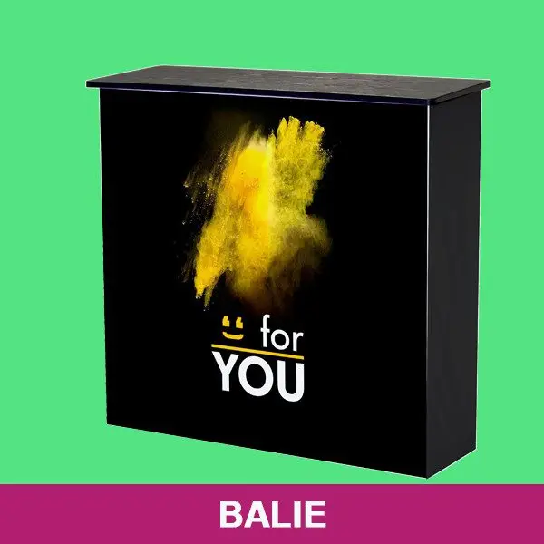 Heb je snel een leuke balie nodig geheel in jou huisstijl of passend bij je stand?